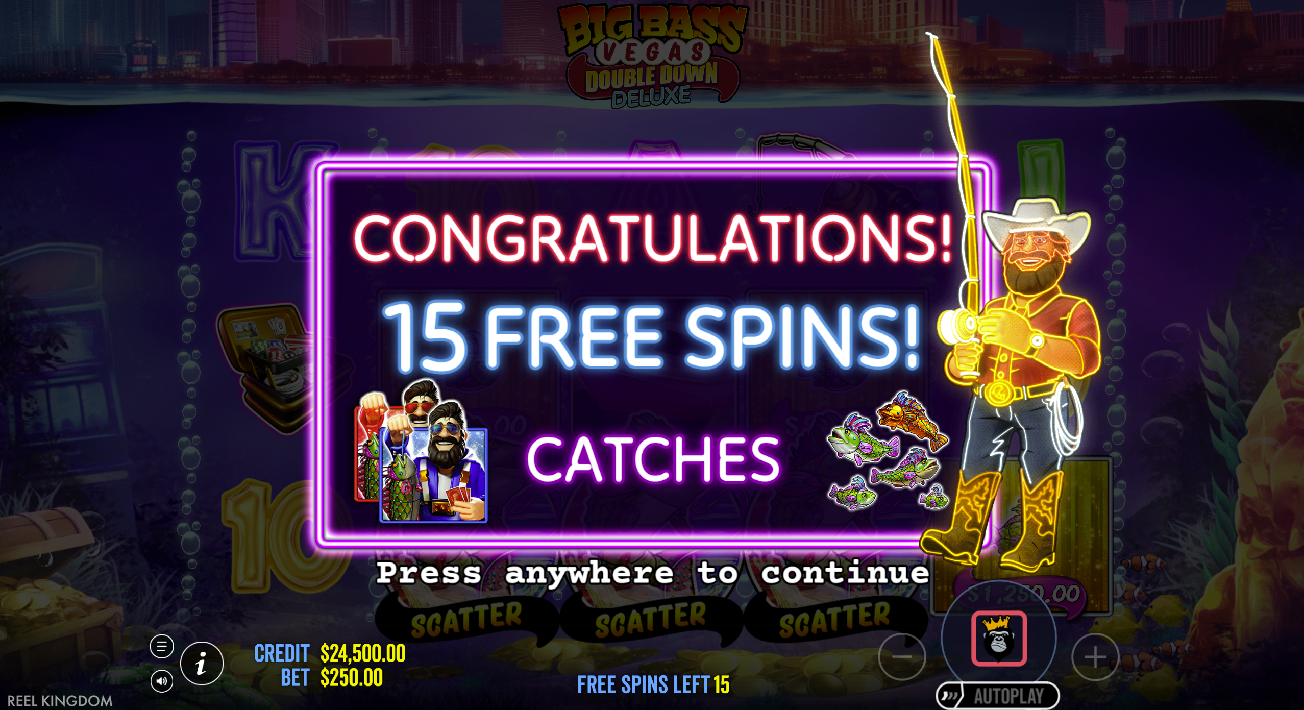 The mix of fishing-themed symbols with Vegas-style neon visuals gives the slot a vivid, energetic vibe: its flashy yet relatable for fans of classic slot mechanics. The addition of modern bonus mechanics (money symbols, wild-collector, retriggers) adds enough depth to keep things interesting. :contentReference[oaicite:14]{index=14}