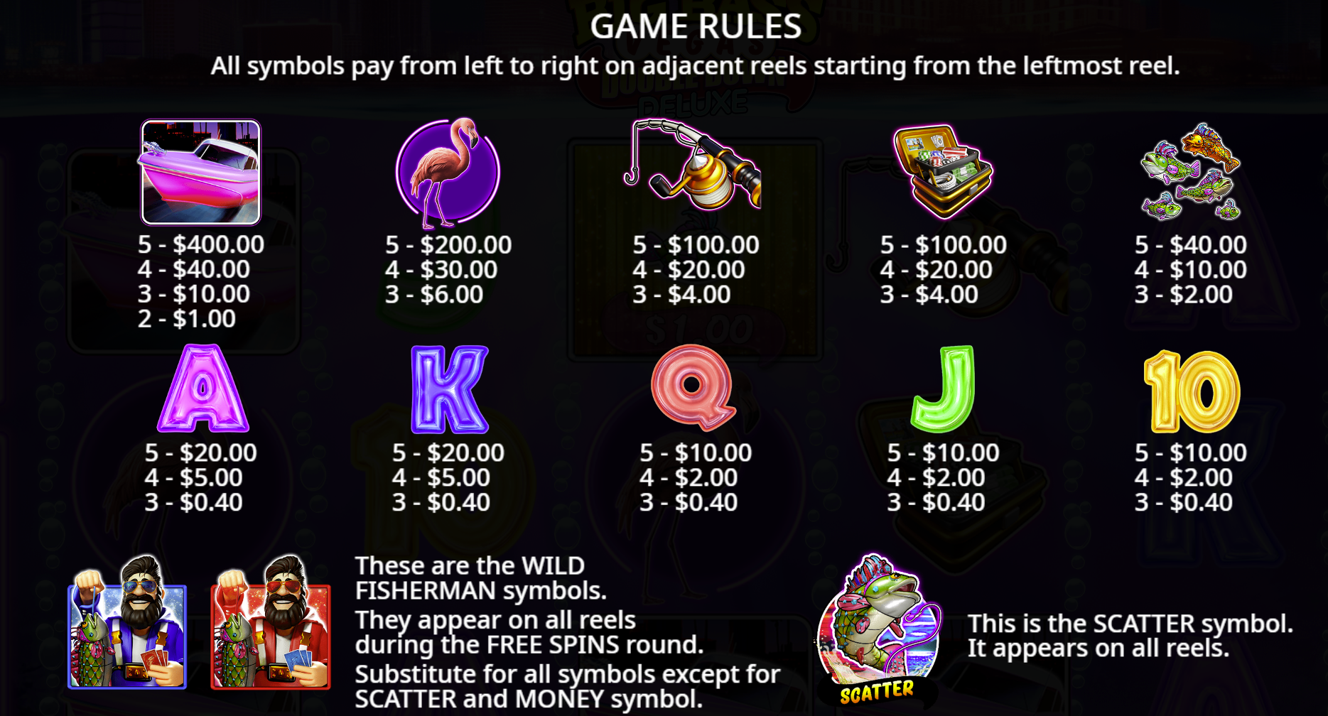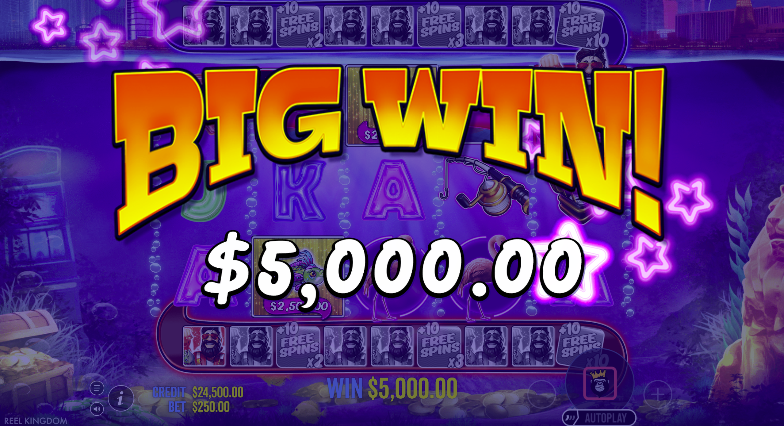 • Theme: Fishing meets Las Vegas bright neon, reels of symbols like boats, fishing gear, fish & more :contentReference[oaicite:4]{index=4}
